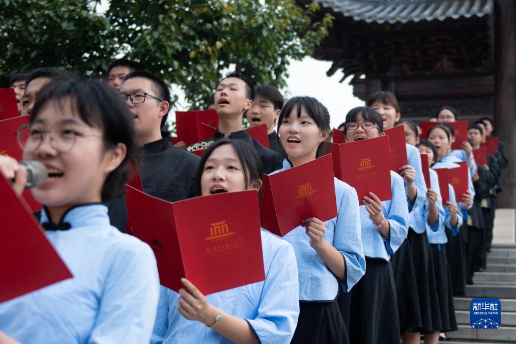9月4日,湖北省武昌實驗中學學生在誦讀《惟楚有材賦》。