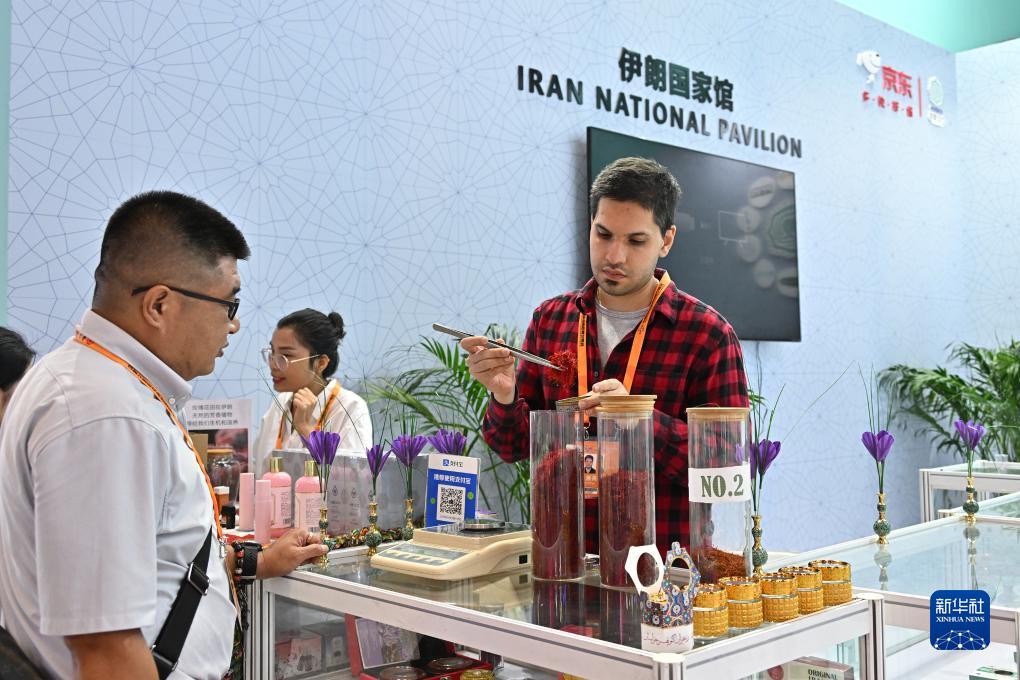 9月4日,一名參觀者在服貿會國家會議中心的伊朗展臺購物。