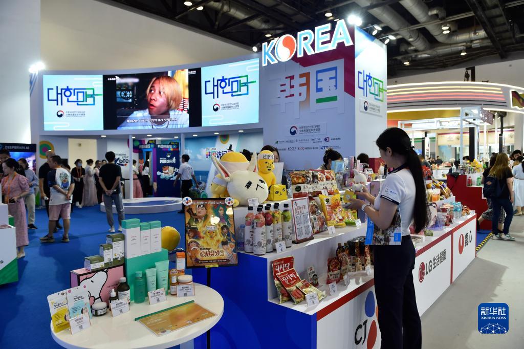 9月4日,在服貿會國家會議中心的韓國展臺,觀眾在挑選商品。