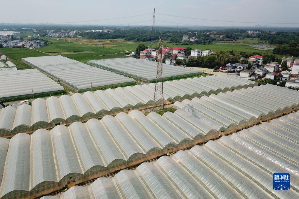 9月4日拍攝的江西省南昌市石埠鎮西崗村“夢飛田園”蘆筍產業示范區種植基地(無人機照片)。