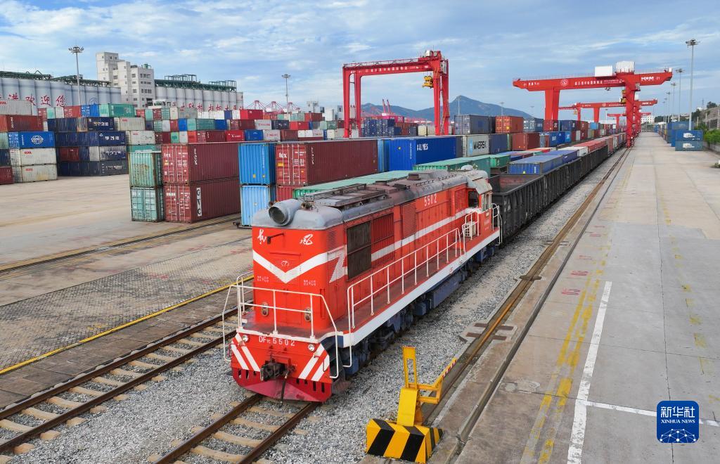 9月4日,在江蘇省連云港市中哈連云港物流合作基地,一列中歐班列整裝待發(無人機照片)。