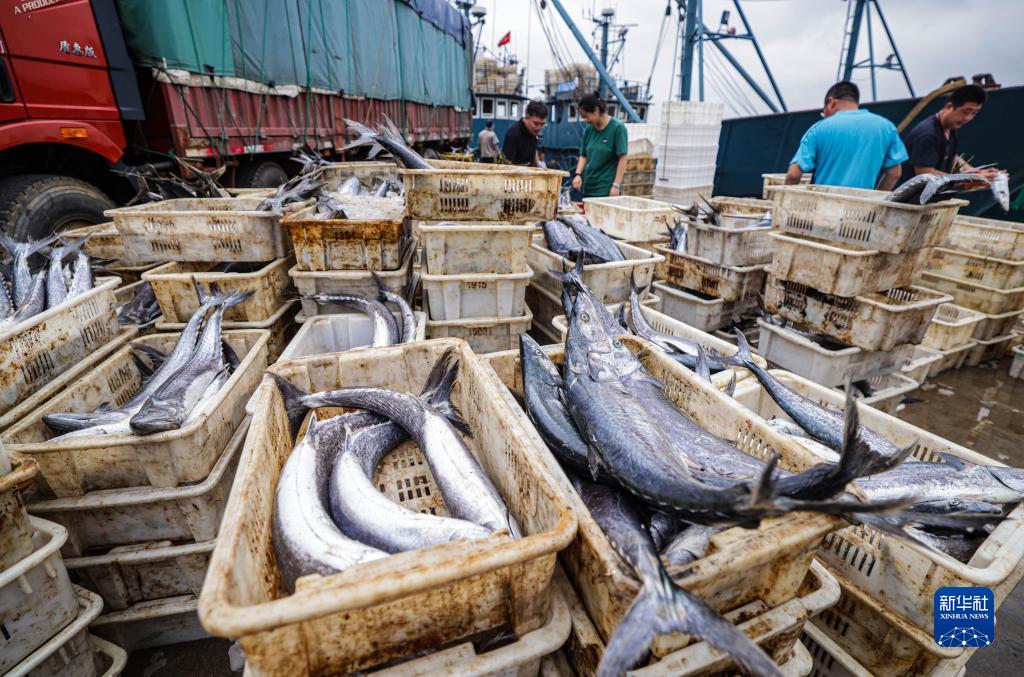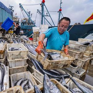 當日,山東省榮成市成山鎮落鳳漁港一派繁忙景象,秋捕歸來的漁船滿載而歸,靠港卸魚。