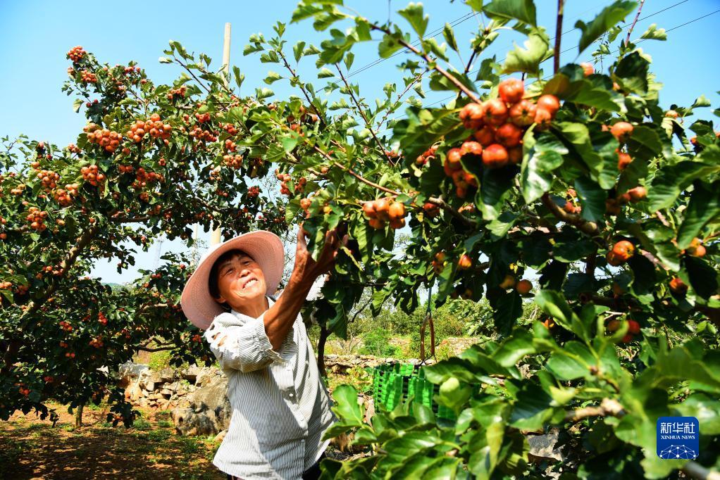 9月5日,山東省棗莊市山亭區水泉鎮柴山前村農民在采摘山楂。