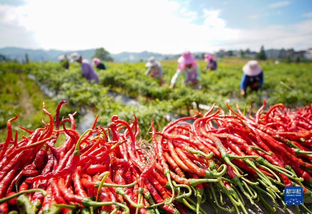 9月5日,貴州省黔東南苗族侗族自治州丹寨縣興仁鎮臺辰村村民在采收辣椒。