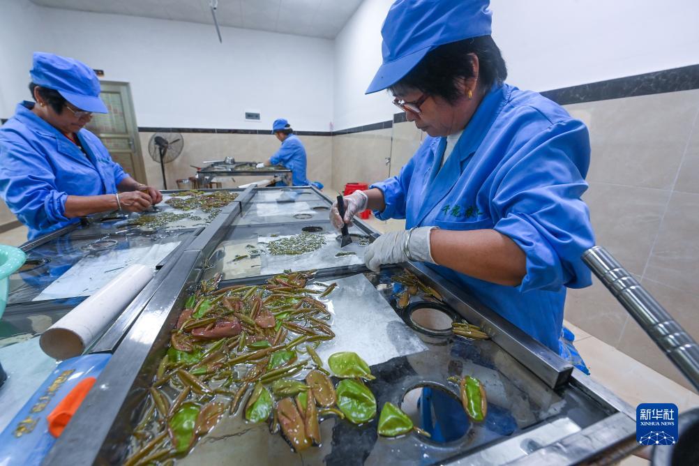 9月5日,在建德市航頭鎮烏龍村西湖莼菜產業園的車間內,工人在分揀剛剛采摘的莼菜。