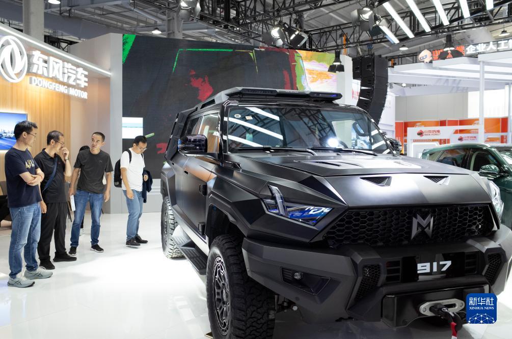 9月5日,觀眾在服貿會首鋼園區的東風汽車集團展臺了解一款新能源汽車。