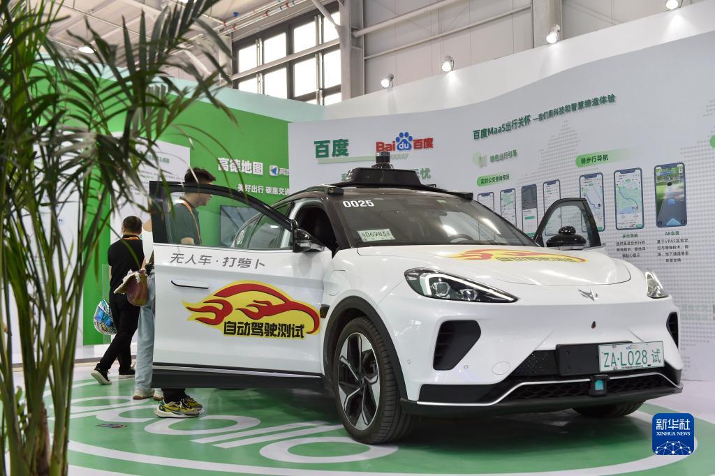 這是9月5日在服貿會首鋼園區拍攝的蘿卜快跑無人駕駛測試車。