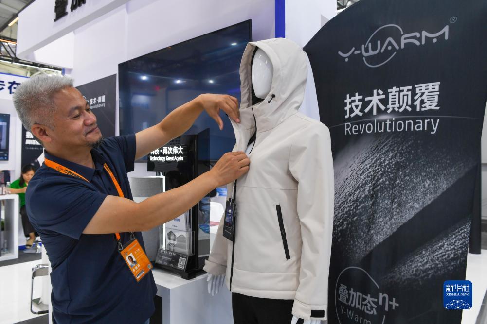 9月5日,在服貿會首鋼園區的北京“專精特新”中小企業展區內,一家企業展示使用新型保暖材料制作的防寒服裝。