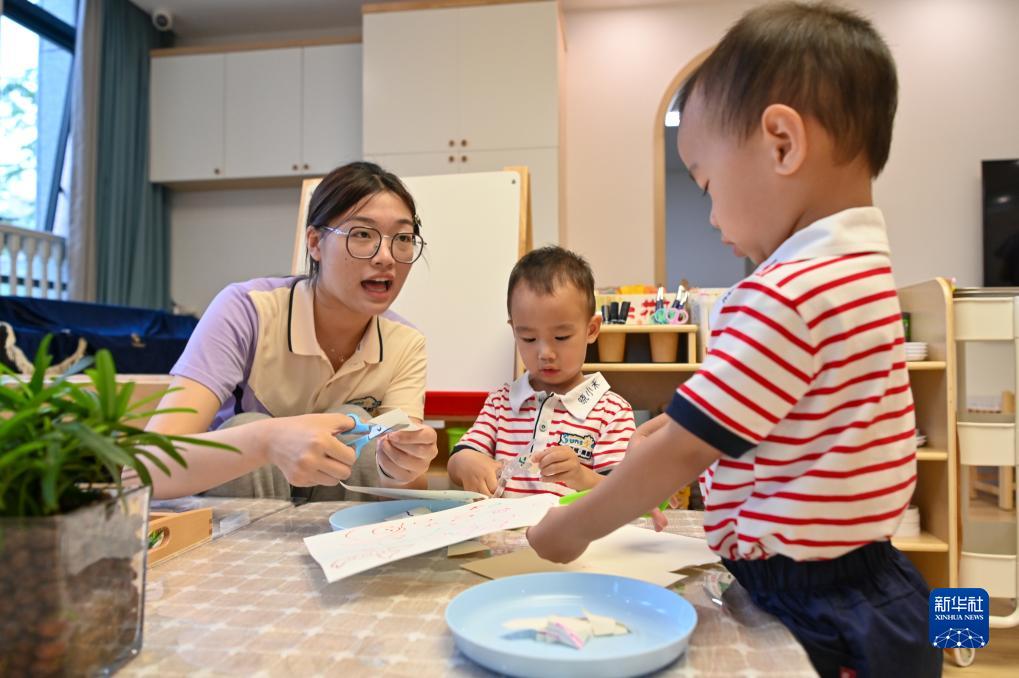 9月4日,南京市首家公建公辦托育園——西城晨星曉小禾托育中心二期項目在建鄴高新區國際研發總部園正式開園,數十名3歲以下的小朋友在托育老師陪伴下愉快地玩樂、學習,讓在這里工作的“職場父母”樓上上班,樓下帶娃。據介紹,該托育園可容納85個托位,根據附近產業園區內職工上班時段全年開放,讓“職場父母”上下班與接送孩子無縫銜接。