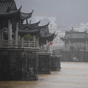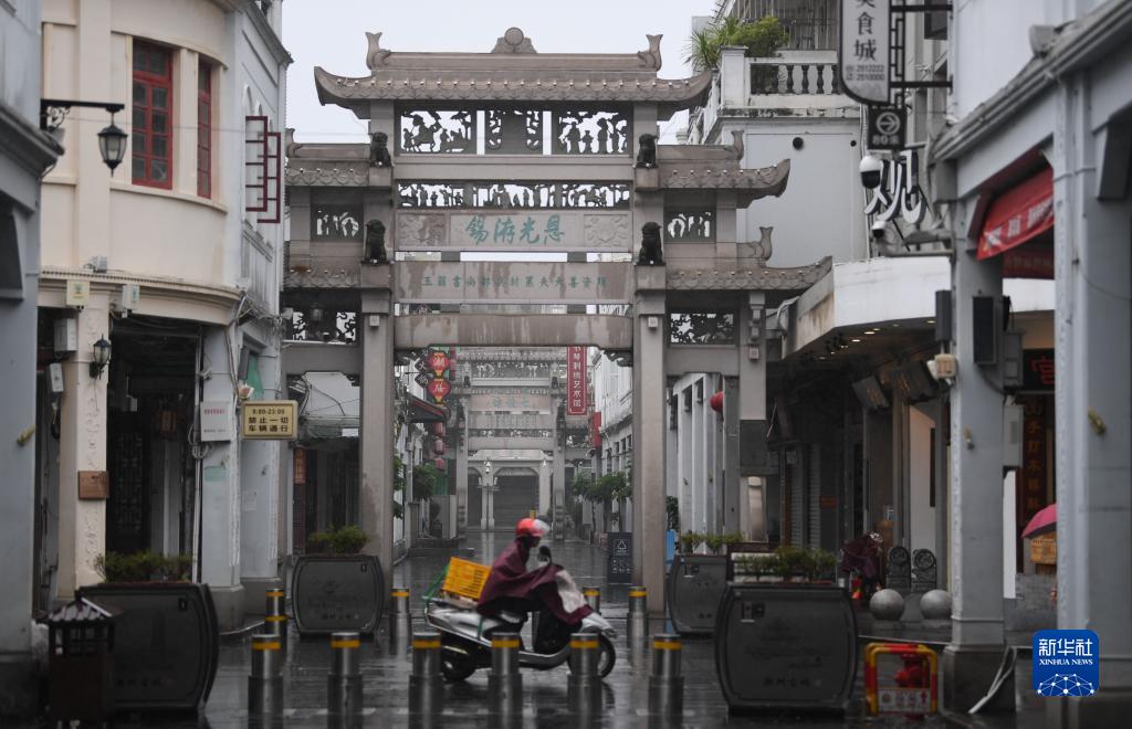 9月5日,臺風“??睅韽娊邓鞖?,廣東省潮州市牌坊街客流稀疏。