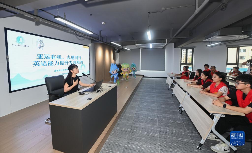 當日,浙江省湖州市吳興區道場鄉在湖山府社區黨群服務中心組織開展“亞運有我、志愿同行”新時代文明實踐志愿服務培訓班,由年輕黨員、退役軍人、社會工作者、居民群眾等共同組成亞運志愿服務隊,圍繞語言能力、急救技能、助殘服務、應急救援等進行理論和實操培訓。