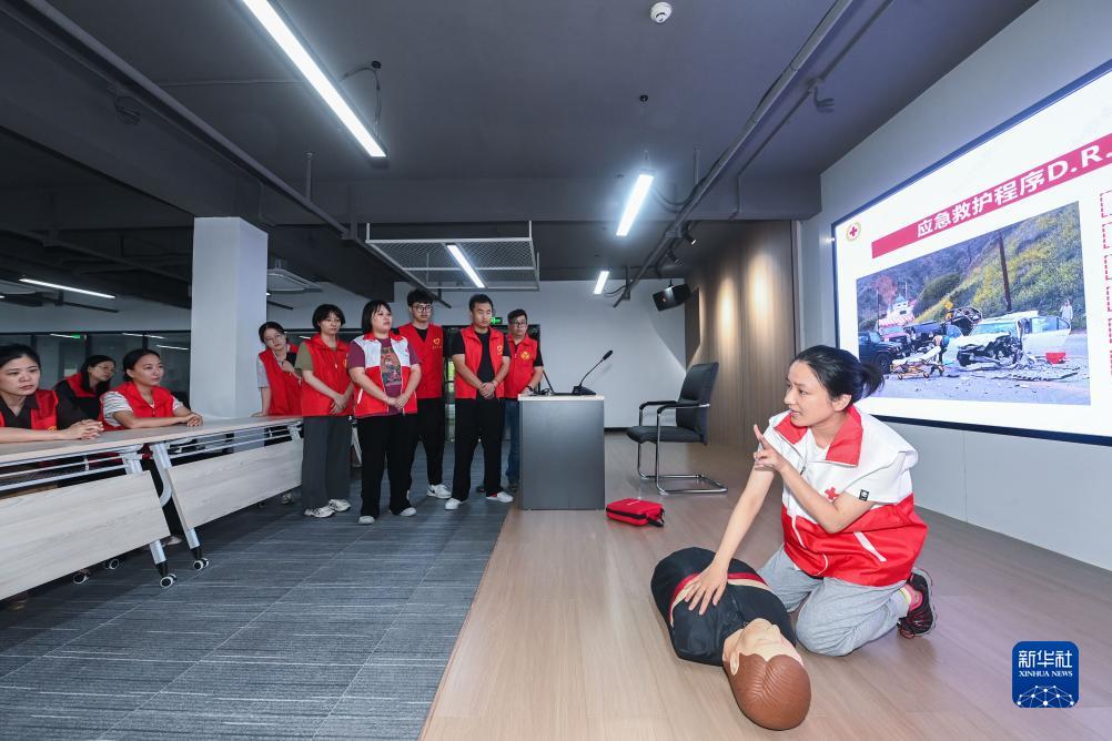 9月5日,道場鄉紅十字會、衛生院醫護人員在對志愿者們進行止血包扎、心肺復蘇等應急救護實操培訓。