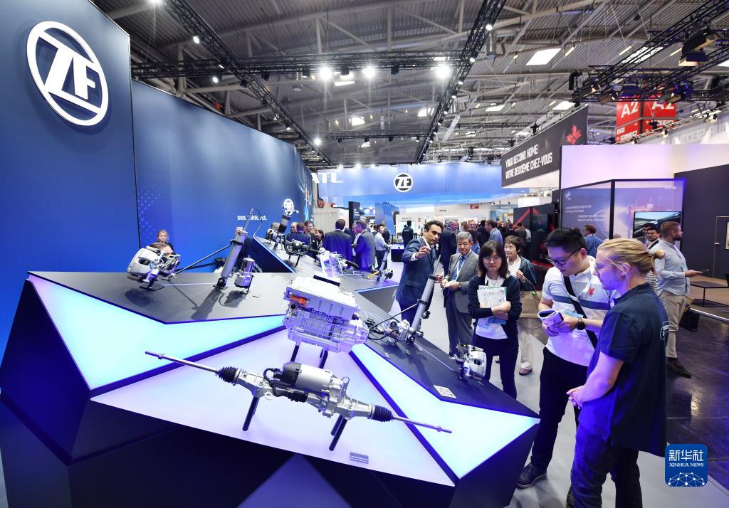 9月5日,在德國慕尼黑,人們在德國國際汽車及智慧出行博覽會的采埃孚展區參觀。