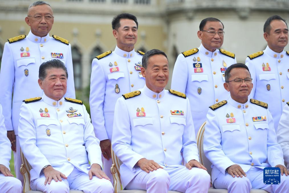 9月5日,在泰國曼谷律實宮,泰國總理賽塔·他威信(前排中)及新一屆內閣拍攝合影。