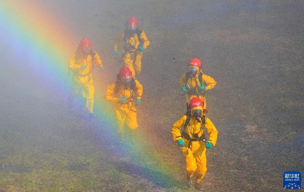9月5日,演習人員在白俄羅斯明斯克州進行消防救援演習。
