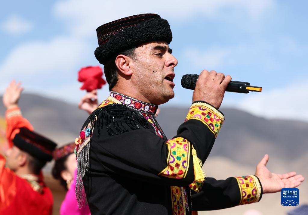 在新疆塔什庫爾干塔吉克自治縣帕米爾旅游區游客服務中心,縣文工團演員唱歌歡迎游客(9月4日攝)。