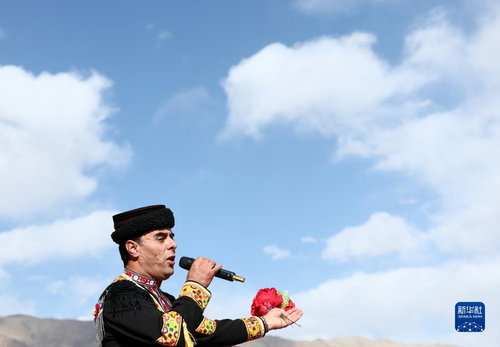 在新疆塔什庫爾干塔吉克自治縣帕米爾旅游區游客服務中心,縣文工團演員唱歌歡迎游客(9月4日攝)。