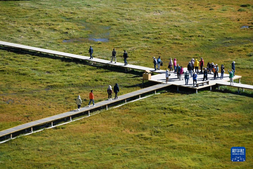 游客在新疆塔什庫爾干塔吉克自治縣金草灘濕地公園游玩(8月28日攝)。
