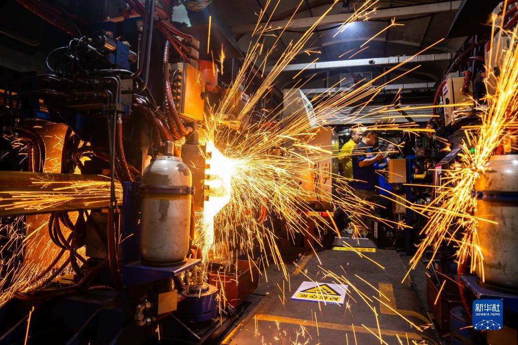 9月6日凌晨,在京廣高鐵株洲西至衡山西區間,鐵路工人操作車載焊機進行焊軌作業。