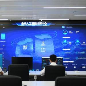 9月6日,在未來人工智能計算中心監控運維室,工作人員通過智慧大屏監測平臺運行情況。