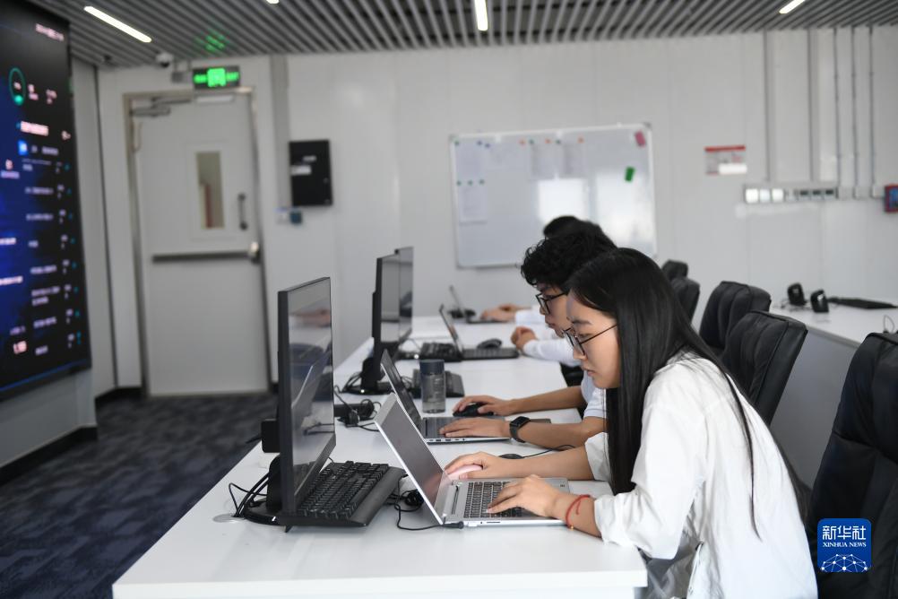 9月6日,在未來人工智能計算中心監控運維室,工作人員通過智慧大屏監測平臺運行情況。