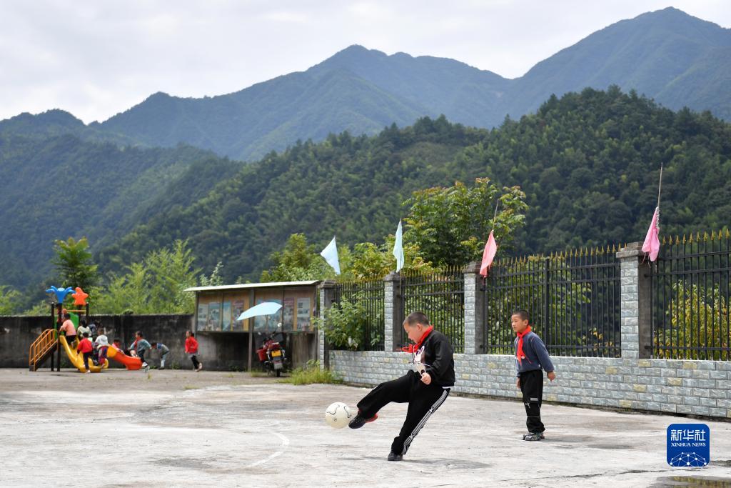 9月4日,報木小學的學生們課間在校園里玩耍。