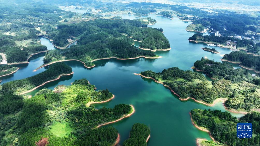 9月6日拍攝的貴州省黔東南苗族侗族自治州黃平縣舊州鎮?陽湖畔美景(無人機照片)。