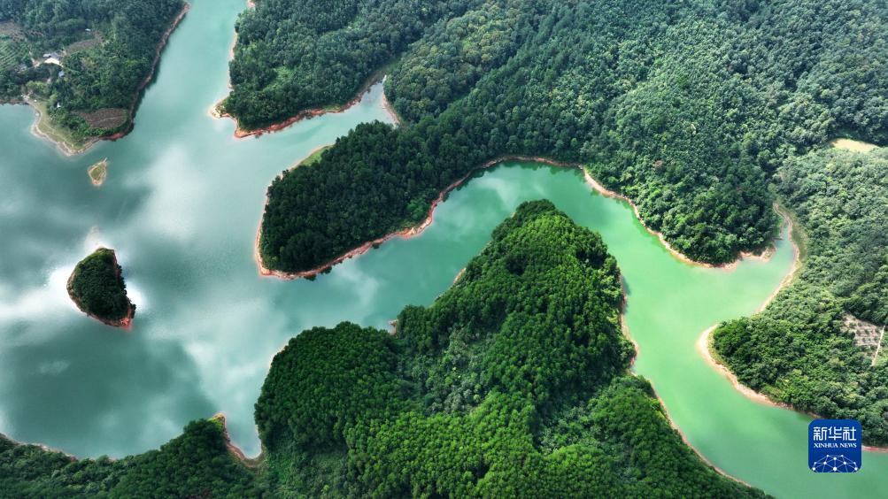 9月6日拍攝的貴州省黔東南苗族侗族自治州黃平縣舊州鎮?陽湖畔美景(無人機照片)。