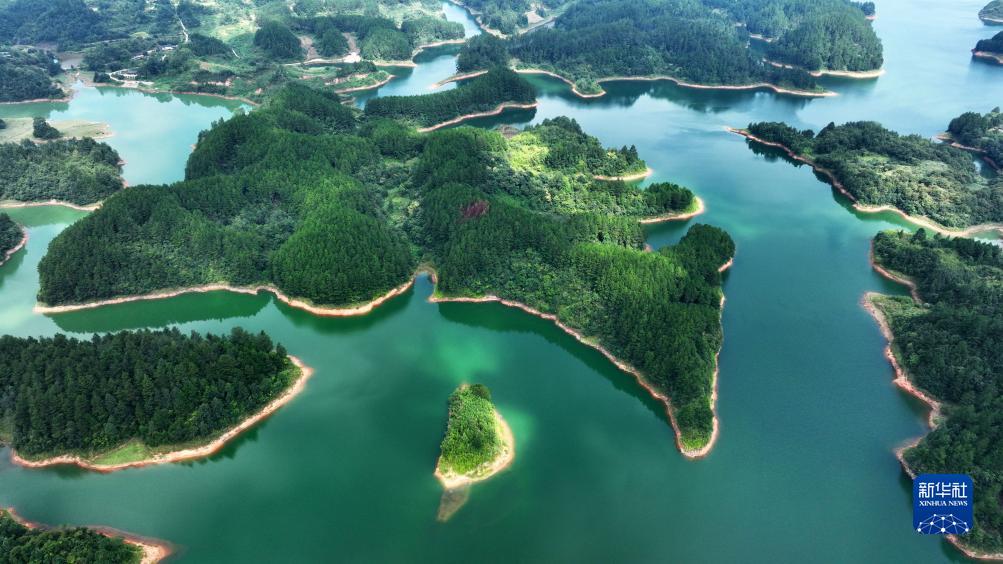9月6日拍攝的貴州省黔東南苗族侗族自治州黃平縣舊州鎮?陽湖畔美景(無人機照片)。