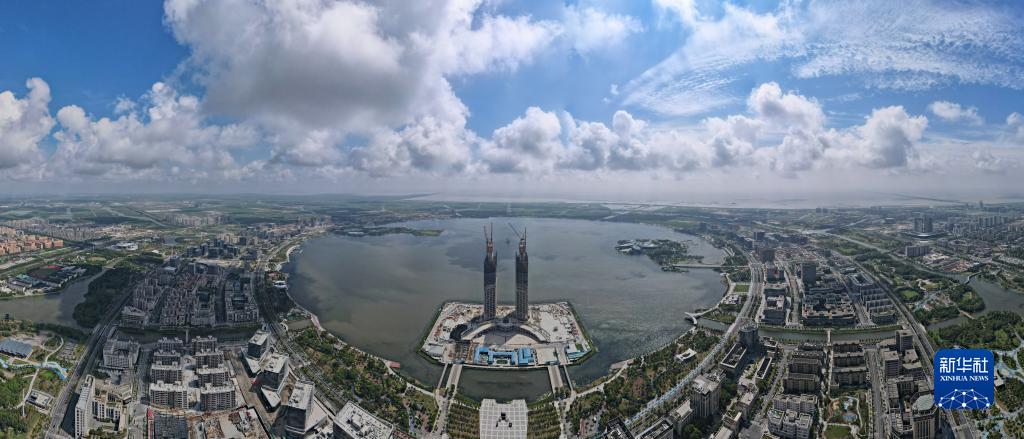 9月6日拍攝的臨港西島中銀金融中心項目建設工地(無人機照片)。