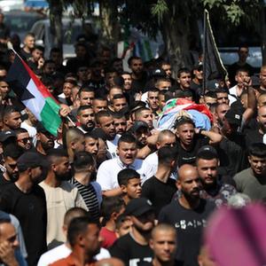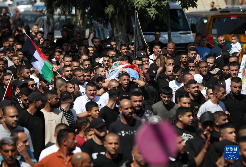 9月5日,人們在約旦河西岸城市圖勒凱爾姆參加一名在沖突中身亡的巴勒斯坦人的葬禮。