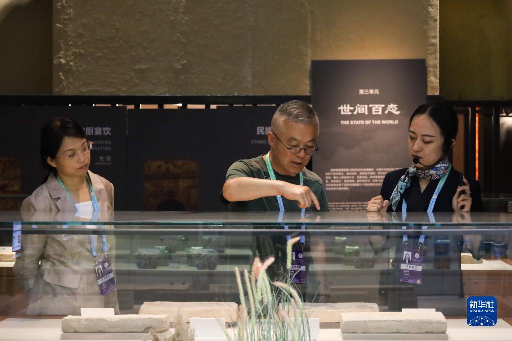 9月6日,與會嘉賓在第六屆絲綢之路(敦煌)國際文化博覽會上參觀酒泉魏晉壁畫墓復制展。