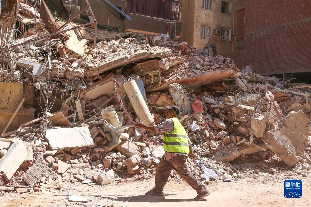 9月6日,救援人員在埃及開羅的樓房倒塌現場工作。