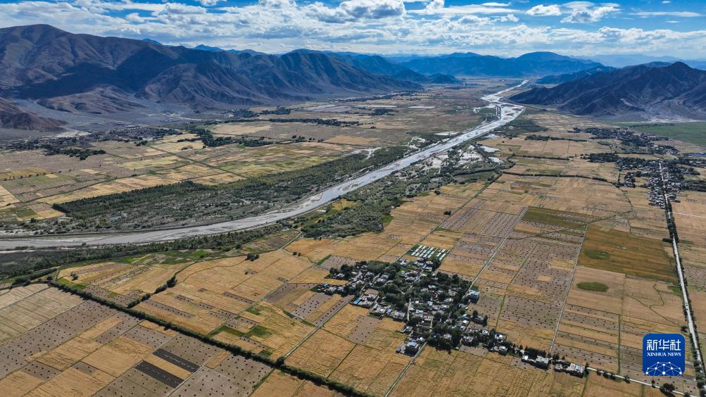 西藏日喀則市年楚河流域是西藏糧食的主產區之一,今年雨水豐沛,糧食長勢喜人,大地鋪金,農民喜迎豐收。新華社記者 晉美多吉 攝