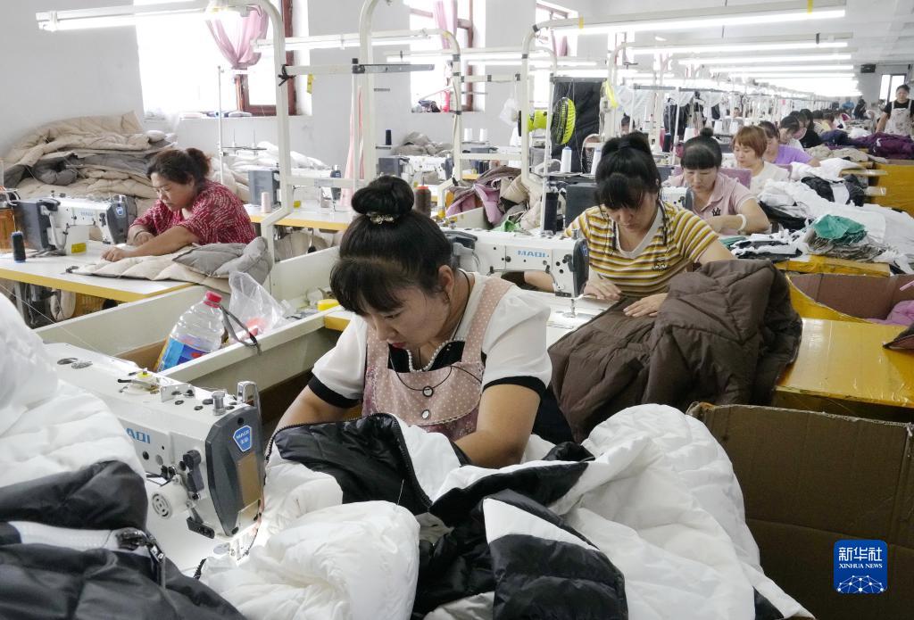 9月6日,工人在遵化市石門鎮一家服裝加工企業的生產車間工作。