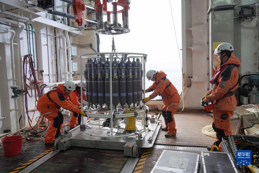 這是科考隊員在北極點附近執行海洋綜合調查作業(9月5日攝)。