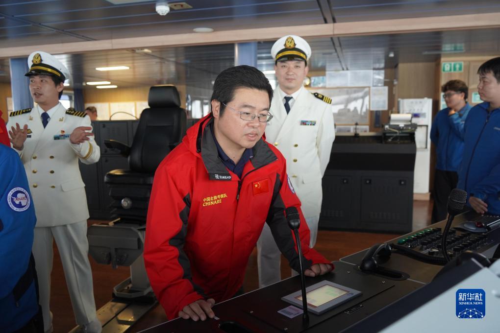 這是抵達北極點后,中國第13次北冰洋科學考察隊領隊王金輝在進行全船廣播,向全體隊員通報抵達北極點的消息(9月5日攝)。