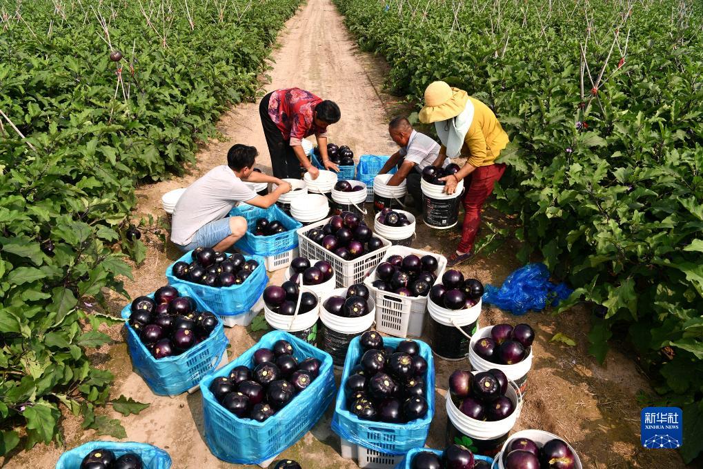 9月7日,在河北省石家莊市欒城區魯家莊村,茄農將收獲的茄子裝箱,準備運往市場銷售。
