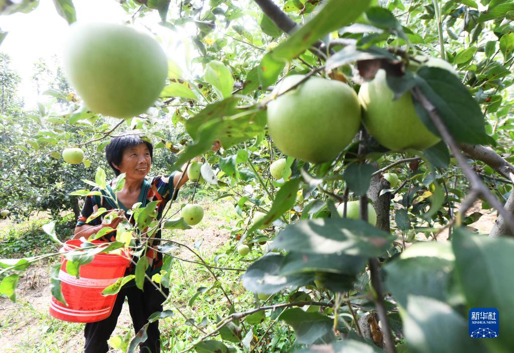 9月6日,河北省石家莊化皮鎮辛合莊村果農在采摘蘋果。