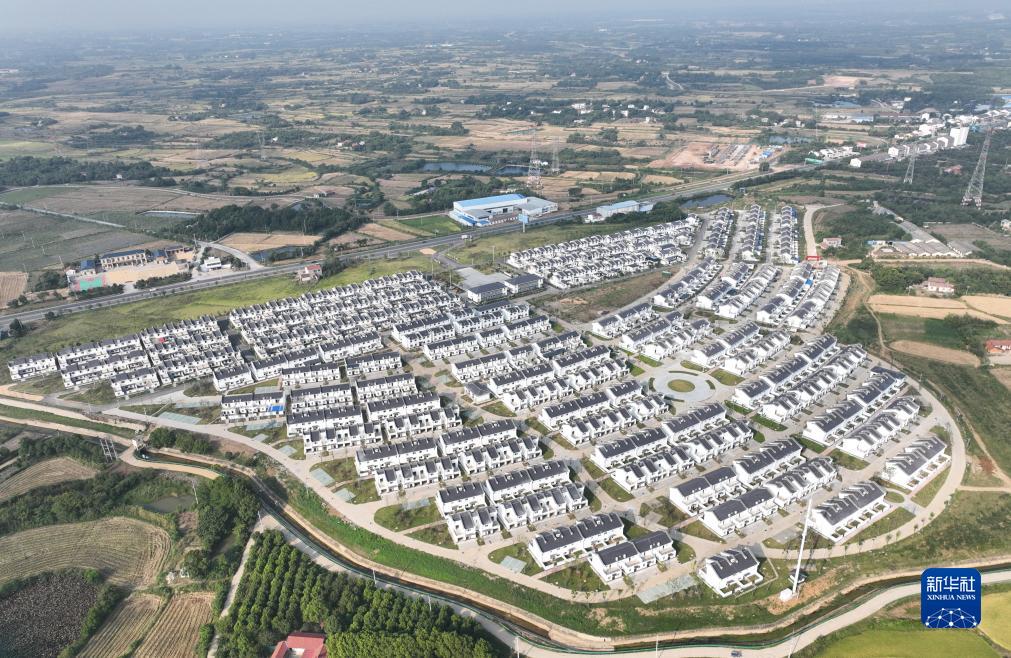 建設完工的沙洋縣沈集鎮帥店新社區(9月7日攝,無人機照片)。