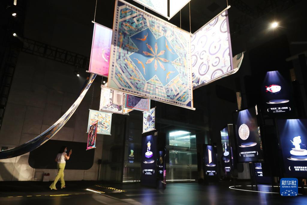 9月7日,參觀者走在外灘大會展覽區數字藝術館內。