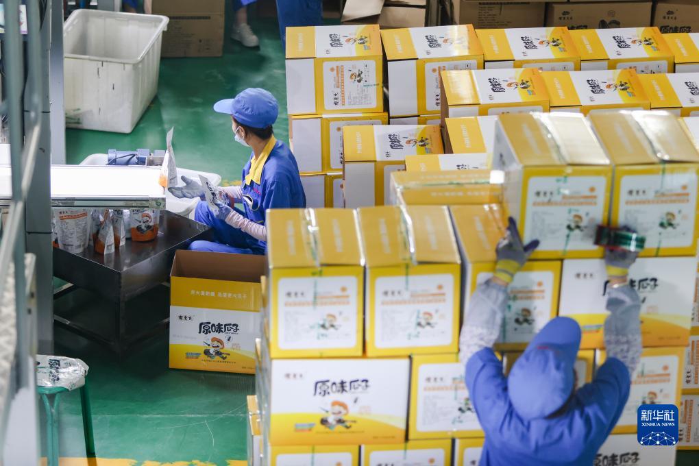 9月7日,在北屯市一家瓜子加工企業,工人在打包剛生產出的瓜子產品。