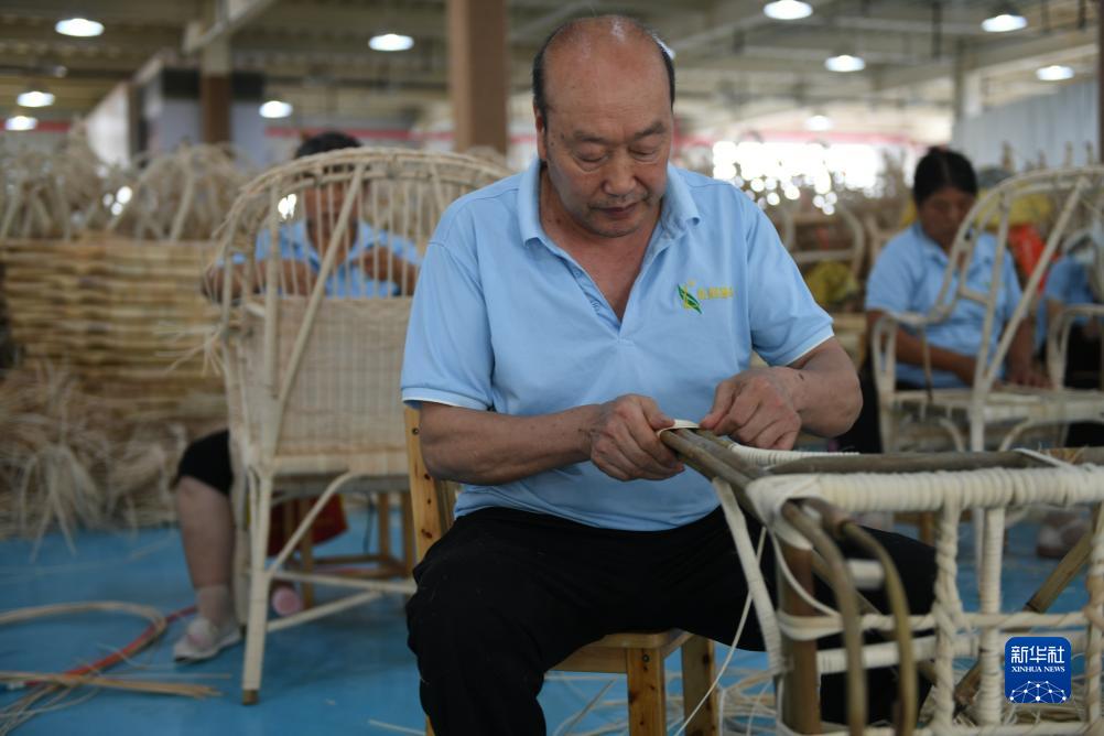 9月7日,在位于漢中市的陜西良順匠心實業有限公司,工作人員在編織藤椅。