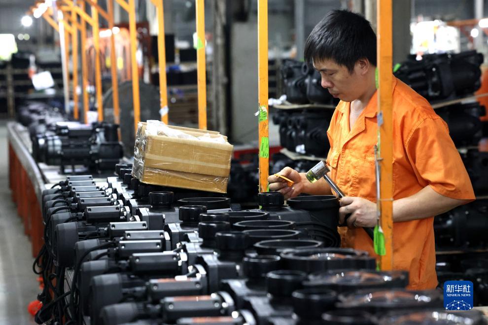 9月7日,工人在福建福安經濟開發區一家以出口為主的電機企業組裝電機配件。