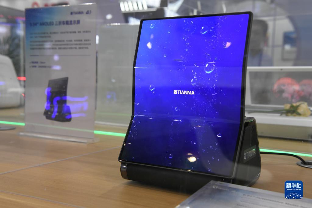 這是9月7日在“2023世界顯示產業大會新型顯示創新成果展”現場拍攝的9.94"AMOLED三折車載顯示屏。