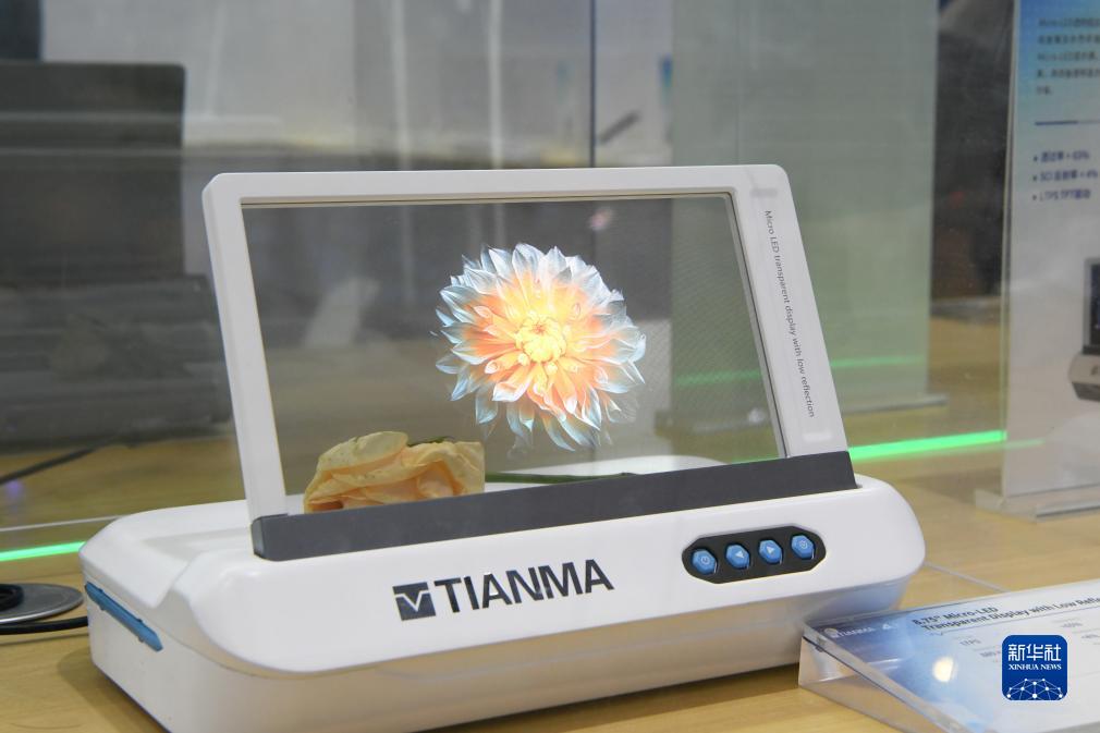這是9月7日在“2023世界顯示產業大會新型顯示創新成果展”現場拍攝的8.75"Micro-LED透明低反顯示。
