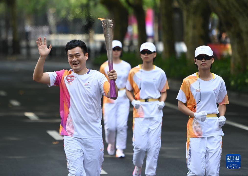 當日,杭州亞運會火炬傳遞在杭州西湖涌金公園廣場啟動,共有106棒火炬手參與當日傳遞。
