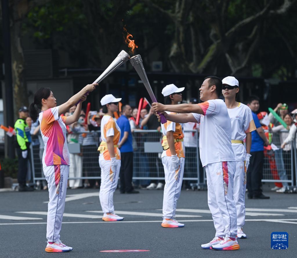 當日,杭州亞運會火炬傳遞在杭州西湖涌金公園廣場啟動,共有106棒火炬手參與當日傳遞。