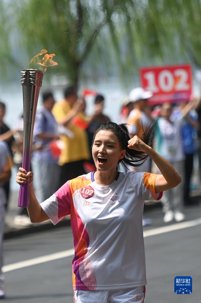 當日,杭州亞運會火炬傳遞在杭州西湖涌金公園廣場啟動,共有106棒火炬手參與當日傳遞。