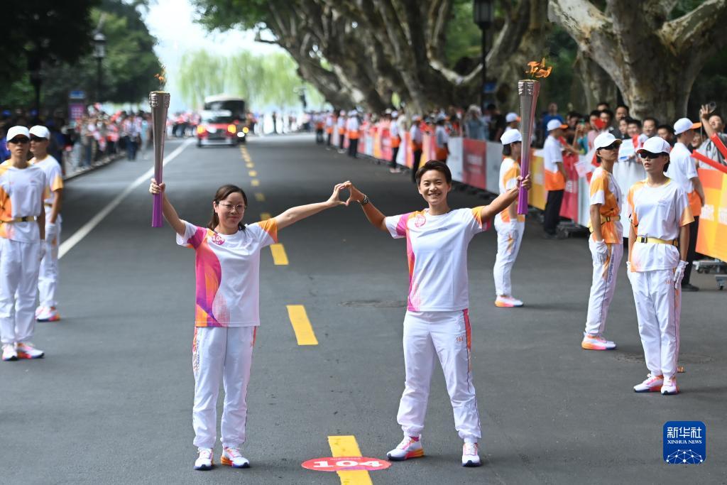 當日,杭州亞運會火炬傳遞在杭州西湖涌金公園廣場啟動,共有106棒火炬手參與當日傳遞。
